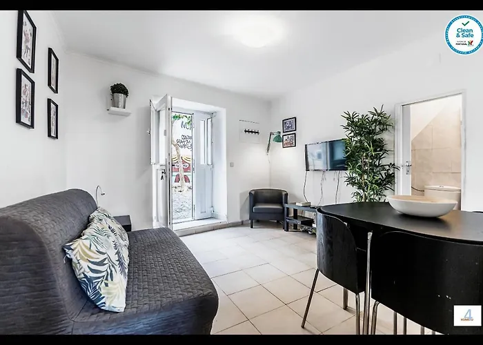 Home4U - Mouraria Typical Neighborhood lägenhet ligger 200 meter från tunnelbanestationen Martim Moniz tunnelbanestation och nära Castelo de Sao Jorge. Lägenheten med 1 sovrum är utrustad med te/kaffebryggare, plattskärms-TV med satellitkanaler och soffa i rummen.